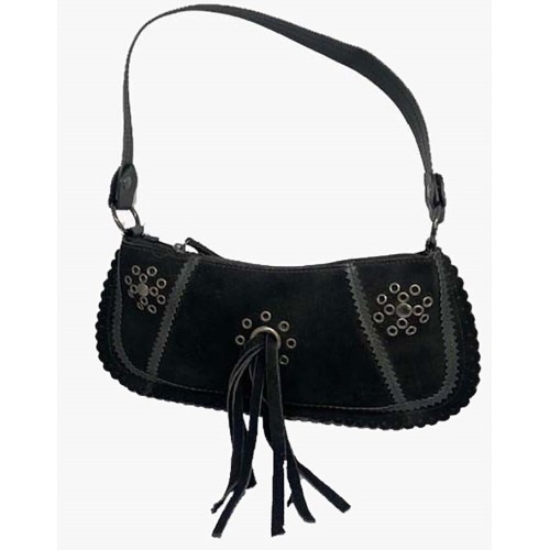 Κομψό δερμάτινο σουετ τσαντάκι BARTUGGI με τρουκς και κρόσια, κλείσιμο με φερμουάρ και εσωτερικά τσε..