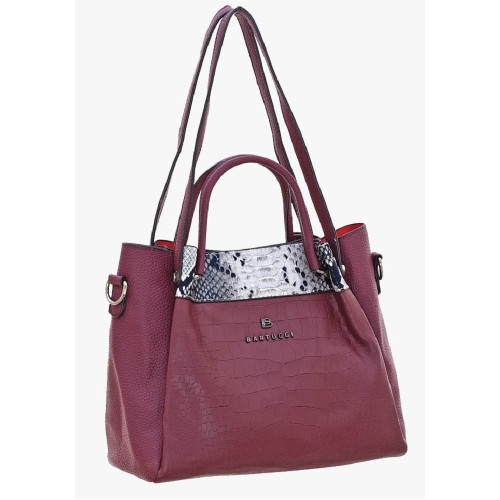 Δίχρωμη κλασσική τσάντα BARTUGGI από ανάγλυφο, σταθερό, υλικό με χεράκια που προσαρμόζονται με αγκρά..