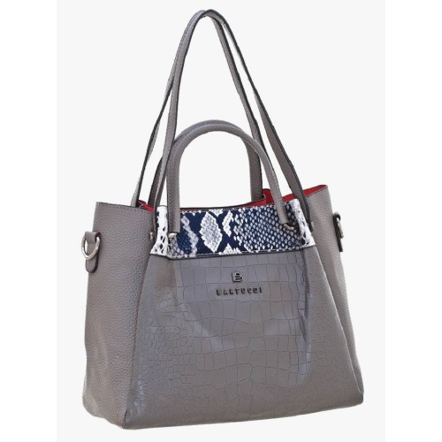 Κομψή γυναικεία τσάντα BARTUGGI με συνδυασμό υλικών. Κλείνει με φερμουάρ και χωράει όσα θέλετε να έχ..