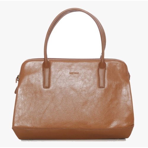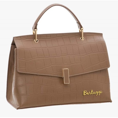 Κλασική γυναικεία τσάντα BARTUGGI σε κάμελ χρώμα με εσωτερικές θέσεις και τσεπάκια. Κλείνει με φερμο..