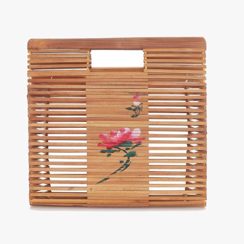 Πρωτότυπη τσάντα "κλουβάκι" από ξύλο μπαμπού. Διαστάσεις: 30 x 38 x 11 cm..