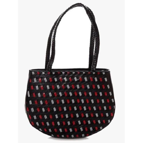 Γυναικεία τσάντα BARTUGGI με ιδιαίτερο σχήμα από ανάγλυφο, ριγέ υλικό, με χεράκια που προσαρμόζονται..