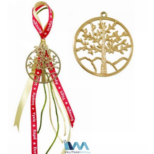 Γούρι Χριστουγεννιάτικο 2024, από Μέταλλο, Δέντρο της ζωής με κορδέλα με ευχές. Προσοχή Μόνο διακο..