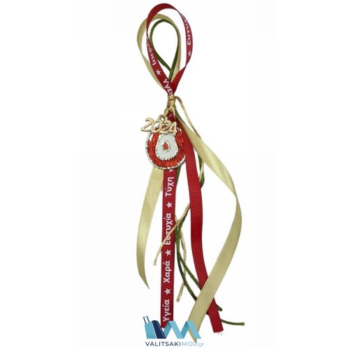Γούρι Χριστουγεννιάτικο 2024, από Σμάλτο, Μικρό μοτίφ με ματάκι & κορδέλα με ευχές. Η συσκευασία πε..