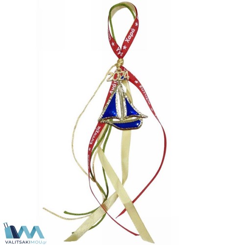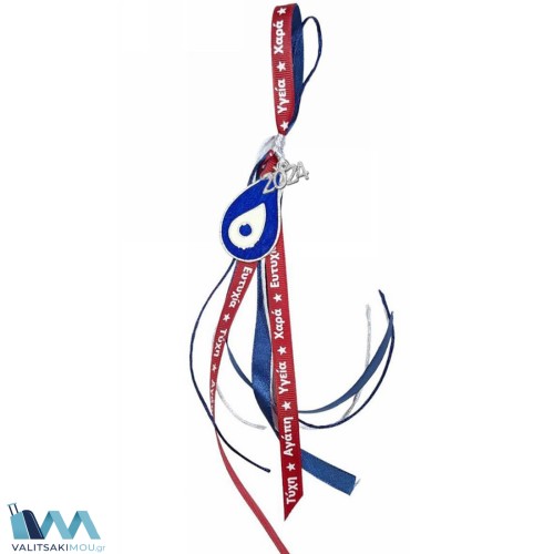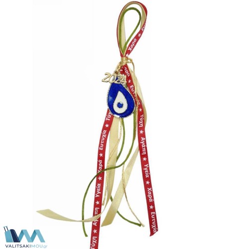 Γούρι Χριστουγεννιάτικο 2024, από Σμάλτο, Μεγάλο μοτίφ με κορδέλα με ευχές. Η συσκευασία περιέχει 3..