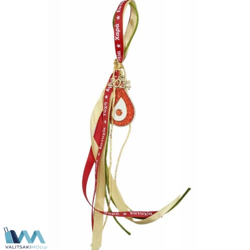 Kostibas 6717-302UX, Γούρι Χριστουγεννιάτικο, Σμάλτος ,Χρυσαφί-Κόκκινο, 3ΤΜΧ