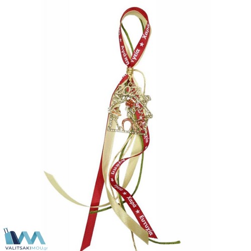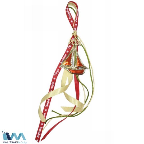 Kostibas 6717-303UX, Γούρι Χριστουγεννιάτικο, Σμάλτος ,Χρυσαφί-Κόκκινο, 3ΤΜΧ