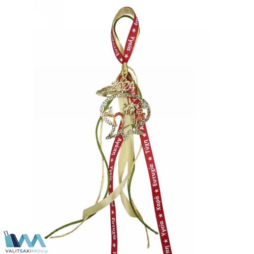 Γούρι Χριστουγεννιάτικο 2024, από Σμάλτο, Μεγάλο μοτίφ με κορδέλα με ευχές. Η συσκευασία περιέχει 3..