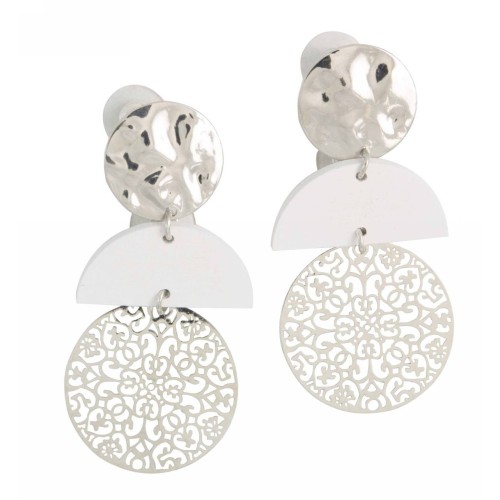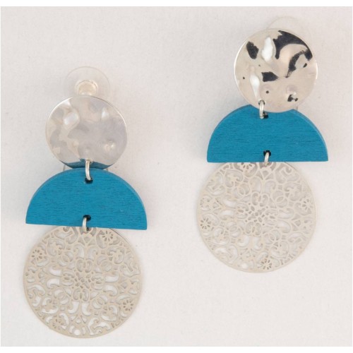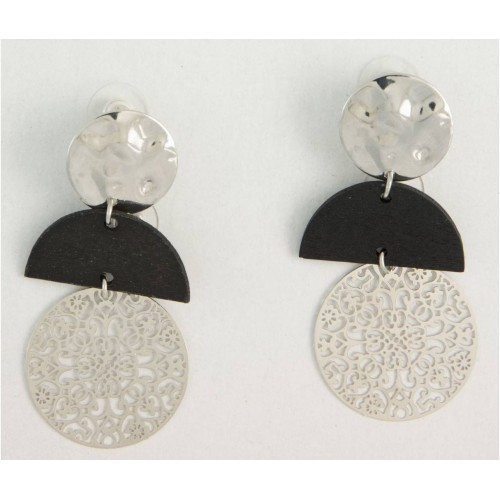 Σκουλαρίκια Φιλιγκράν Ξύλο Σε ημικυκλικό σχήμα + ασημί φιλιγκράν..