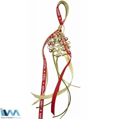 Χριστουγεννιάτικο γούρι 2024, από Μέταλλο, Μικρό φύλλο με κορδόνι & φούντα. Προσοχή Μόνο διακοσμητ..