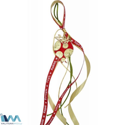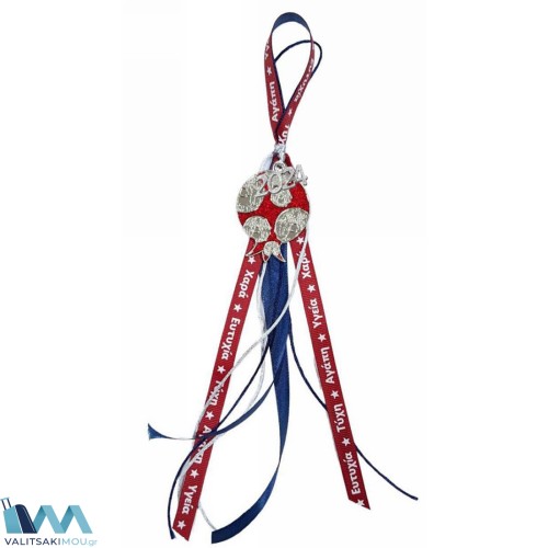 Γούρι Χριστουγεννιάτικο 2024, από Σμάλτο, Μεγάλο μοτίφ με κορδέλα με ευχές. Η συσκευασία περιέχει 3..