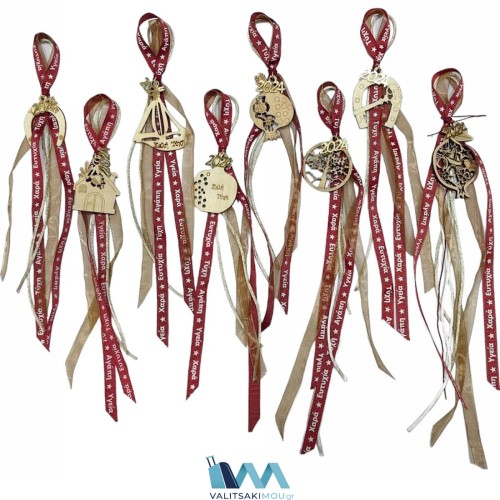 Χριστουγεννιάτικα Γούρια (Πακέτο), από ξύλο με διάφορα μεγάλα σχέδια, φιόγκο & κορδέλα...