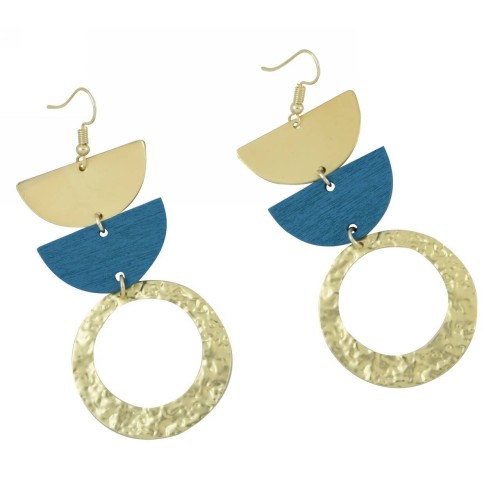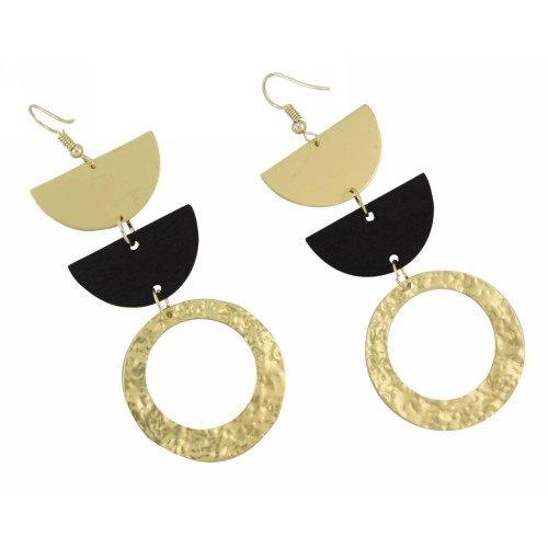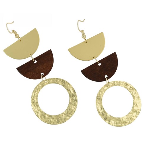 Σκουλαρίκια Διάφορα σχέδια Ξύλο Με σχήμα ημικύκλιο+μεταλλικά μοτίφ..