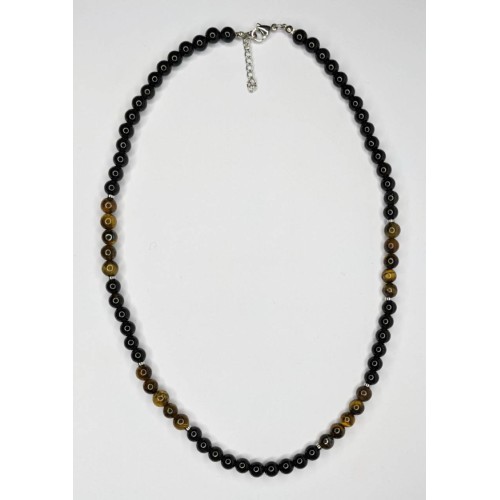 Κολιέ Με πέτρα Αντρικό Με αχάτη,μάτι τίγρη+ροδέλες αιματίτη..