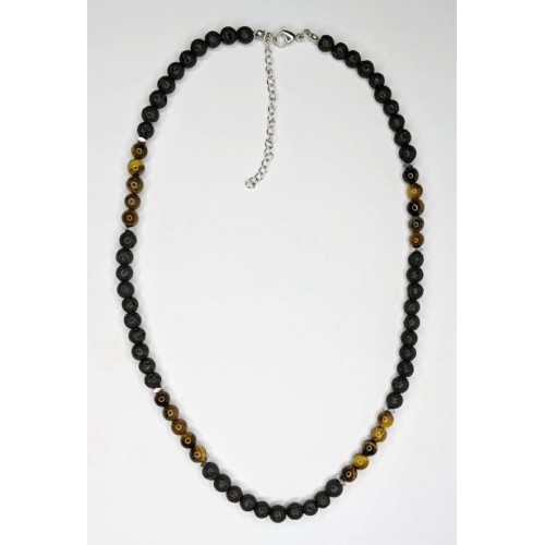 Κολιέ Με πέτρα Αντρικό Με λάβα,μάτι τίγρη+ροδέλες αιματίτη..