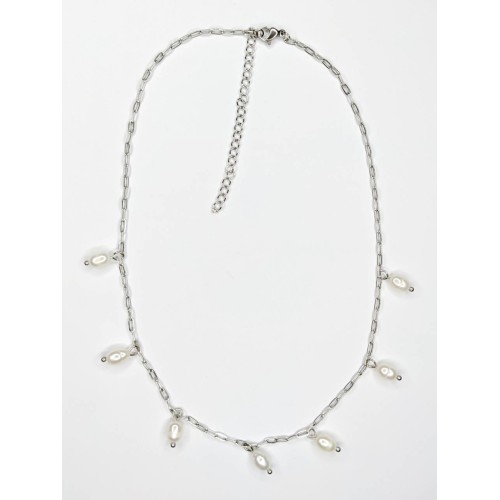 Κολιέ Ατσάλι Ατσάλι Με αλυσίδα τύπου φακαντόρο 0,8mm+μαργαριτάρια 6-7mm..