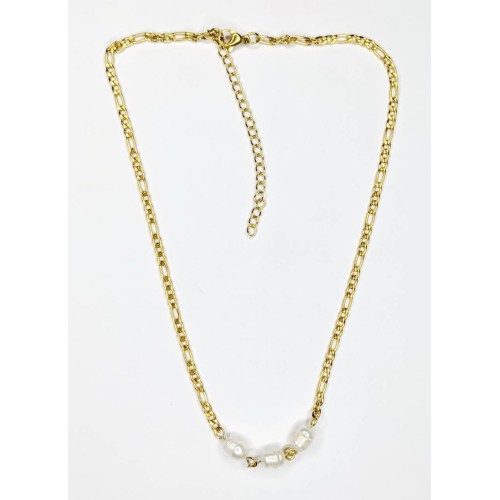 Κολιέ Ατσάλι Ατσάλι Με αλυσίδα+μαργαριτάρια 6-7mm..
