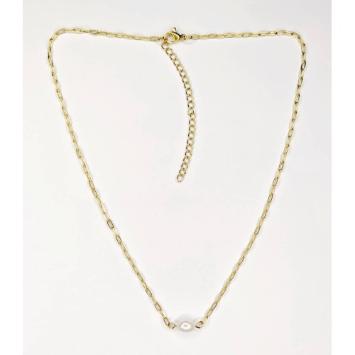 Κολιέ Ατσάλι Ατσάλι Με αλυσίδα+μαργαριτάρι 6-7mm  ..