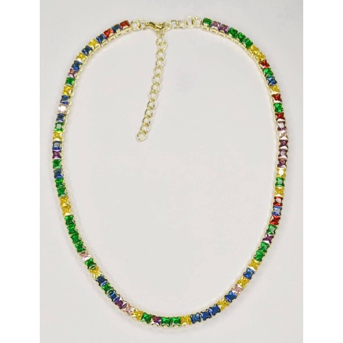 Κολιέ Zircon Μεταλλικό Copper + zircon πολύχρωμο..