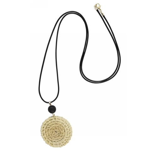 Κολιέ Ψάθινα Ξύλο Με μαύρο+στρόγγυλο ψάθινο μοτίφ..