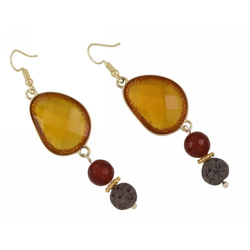 Σκουλαρίκια Με πέτρα Ημιπολύτιμο Με κρυσταλλάκι, καρνεόλιο, τεχνητή ηφαιστιακή πέτρα+ροδέλα..