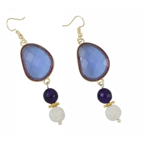 Σκουλαρίκια Με πέτρα Ημιπολύτιμο Με πολυγωνικές πέτρες τοπάζι+maroon..