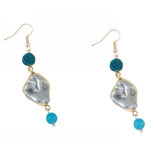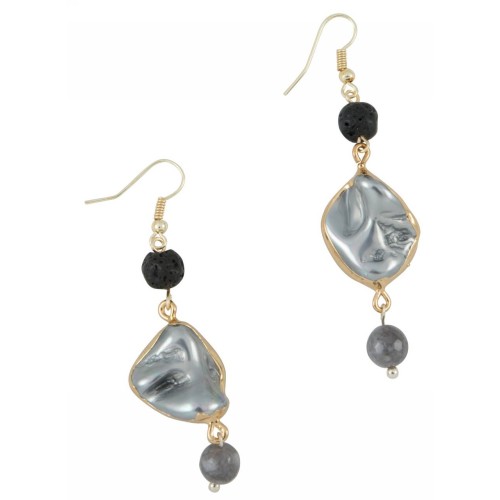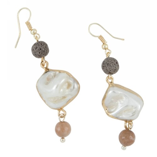 Σκουλαρίκια Με πέτρα Κοχύλι Με πολυγωνική πέτρα ασβεστόλιθο+λάβα..
