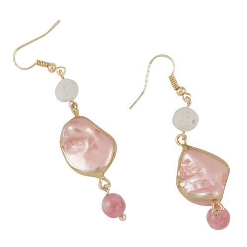 Σκουλαρίκια Με πέτρα Κοχύλι Με πολυγωνική πέτρα ηλιόλιθο+εκρού τεχνητή ηφαιστιακή πέτρα..