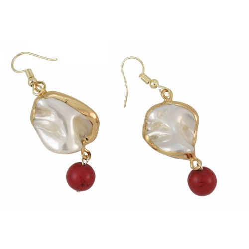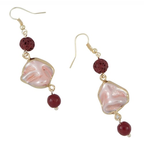 Σκουλαρίκια Με πέτρα Κοχύλι Με πολυγωνική πέτρα καρνεόλιο+μπορντό τεχνητή ηφαιστιακή πέτρα..