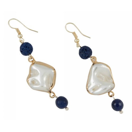 Σκουλαρίκια Με πέτρα Κοχύλι Με πολυγωνική πέτρα κυανίτη+μπλε τεχνητή ηφαιστιακή πέτρα..