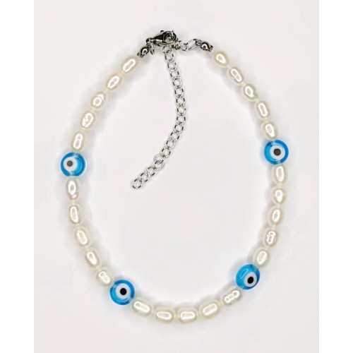 Βραχιόλι Ποδιού Ατσάλι Ατσάλι Με μαργαριτάρια 5-6mm+μάτι γυαλί ..
