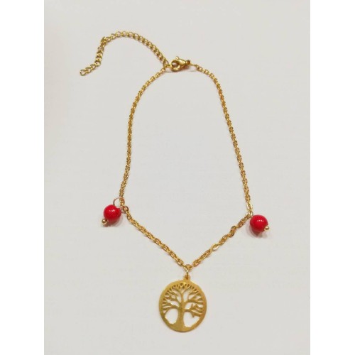 Βραχιόλι Ποδιού Με μοτίφ Ατσάλι Με μοτίφ δέντρο ζωής+κόκκινο ..