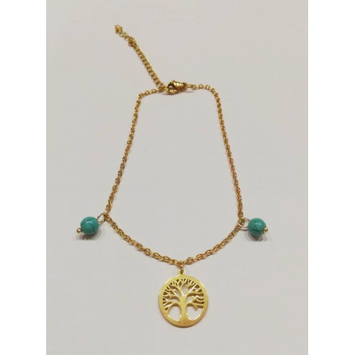 Βραχιόλι Ποδιού Με μοτίφ Ατσάλι Με μοτίφ δέντρο ζωής+τιρκουάζ  ..