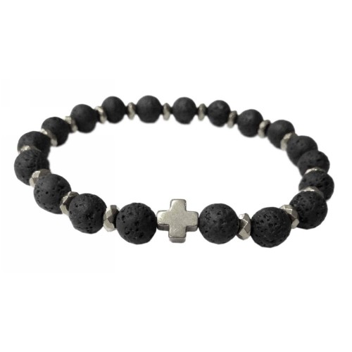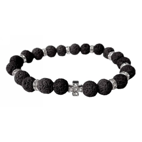 Βραχιόλι Με πέτρα Εκκλησιαστικό Λάβα Με πέτρα λάβα+μεταλλικό μοτίφ σταυρουδάκι..