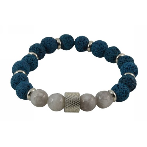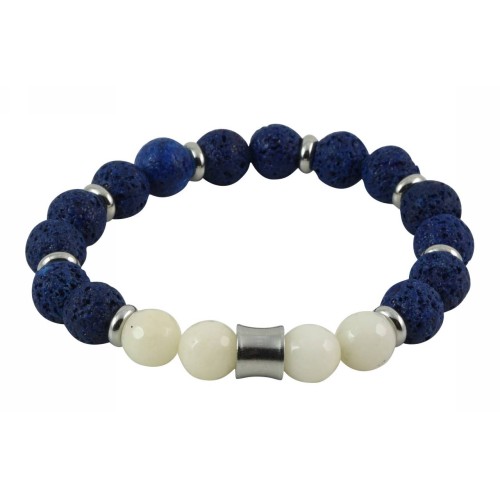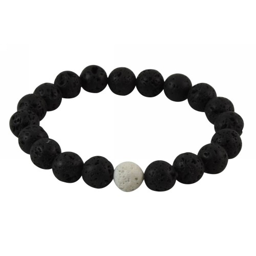 Βραχιόλι Με πέτρα Αντρικό Λάβα Με λευκή τεχνητή ηφαιστιακή πέτρα+λάβα..