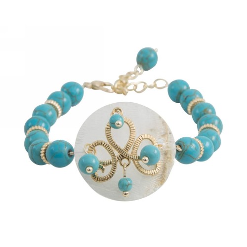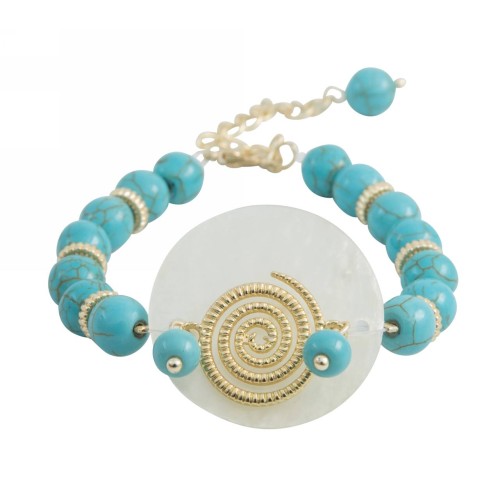 Βραχιόλι Με πέτρα Κοχύλι Τυρκουάζ Τυρκουάζ με ροδέλες, μεταλλικό μοτίφ σπείρα + μοτίφ κοχύλι..