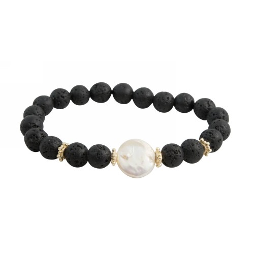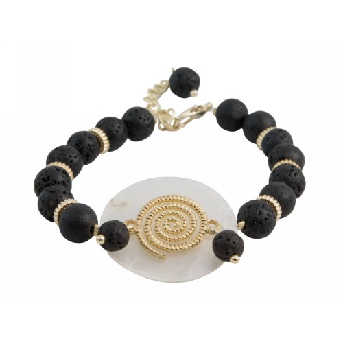 Βραχιόλι Με πέτρα Κοχύλι Στρόγγυλο με λάβα + ροδέλες με δόντια..