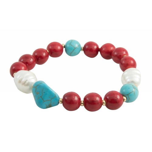 Βραχιόλι Με πέτρα Κοχύλι κοραλί , τυρκουάζ + ακανόνιστο μοτίφ τυρκουάζ..