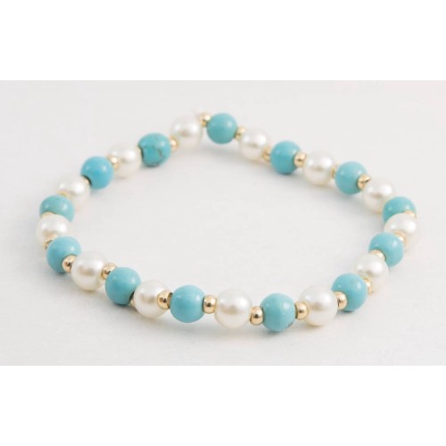 Βραχιόλι Με πέτρα Πέτρα Με τιρκουάζ + πέρλα γυάλινη..