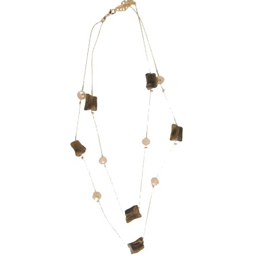 Κολιέ Με μοτίφ Αλυσίδα Με διπλή μπρούτζινη αλυσίδα, κρύσταλλα + ακανόνιστου σχήματος μοτίφ..