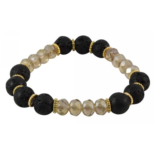 Βραχιόλι Με πέτρα Πέτρα Λάβα Με λάβα, πολυγωνικό κρύσταλλο+ροδέλες..