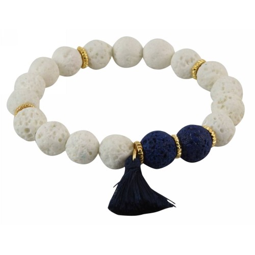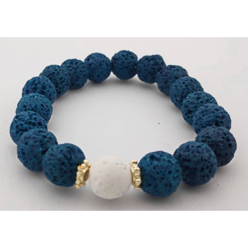 Βραχιόλι Με πέτρα Πέτρα Λάβα Με λευκές+μπλε τεχνητές ηφαιστιακές πέτρες, ροδέλες+μικρή φούντα..