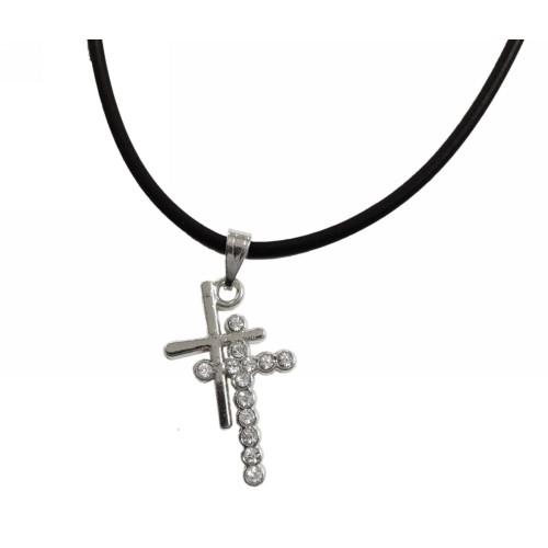 Μενταγιόν Εκκλησιαστικά Στράς σταυρός με καουτσούκ..