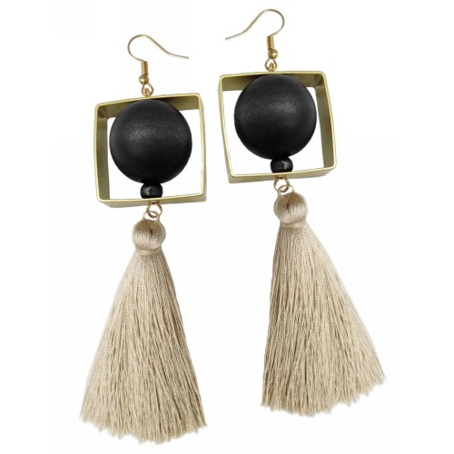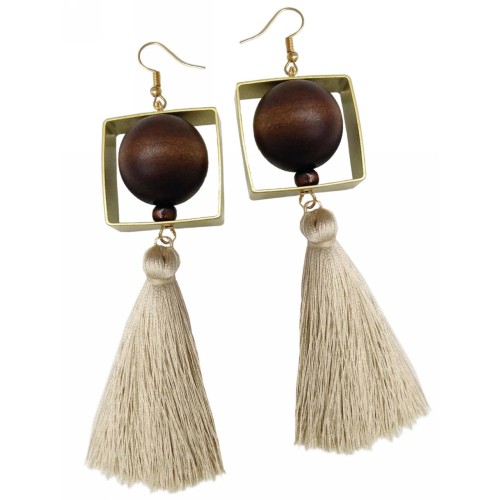 Σκουλαρίκια Wooden Ξύλο Με μεγάλη ξύλινη μπίλια μέσα σε τετράγωνο μπρούτζινο+φούντα..