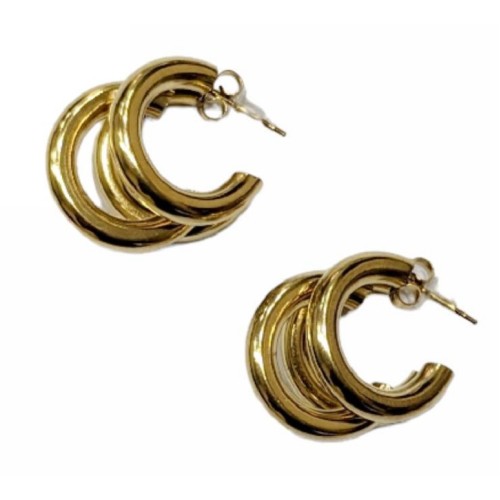 Σκουλαρίκια Κρίκοι Ατσάλι Ατσάλι Στρόγγυλα Στρόγγυλο 3πλό μεγάλο Μήκος:3cm ΧΡΩΜΑ:18k gold ΠΑΧΟΣ:±4..