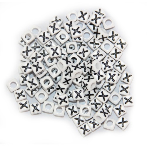 Kostibas 3897-187MX, Χάντρες, Ακρυλικό, Κύβος, Γράμμα X, Ασπρόμαυρο, 415τμχ