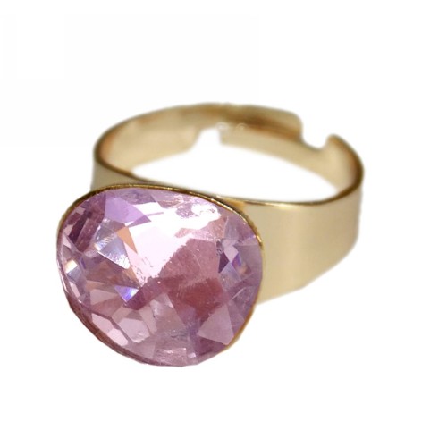 Kostibas 2512-541XS, Δαχτυλίδι, Γυαλί, Μεταλλικό, ΤΕ, Χρυσό με Σομόν Κρυσταλλάκι