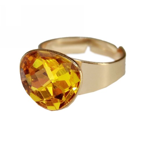 Kostibas 2512-541XQ, Δαχτυλίδι, Γυαλί, Μεταλλικό, ΤΕ, Χρυσό με Πορτοκαλί Κρυσταλλάκι