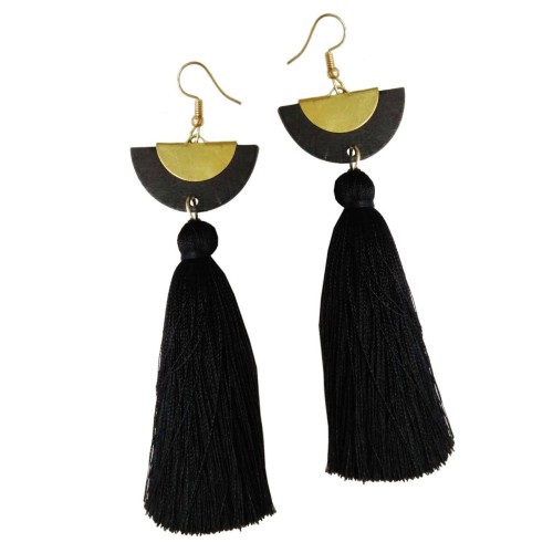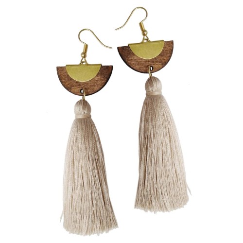 Σκουλαρίκια Wooden Ξύλο Με φούντα+ημικύκλιο+μπρούτζινο κλείσιμο..