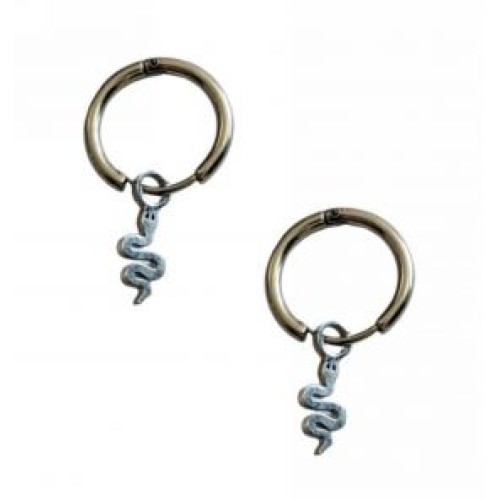 Σκουλαρίκια Κρίκοι από ατσάλι με μοτίφ φίδι..